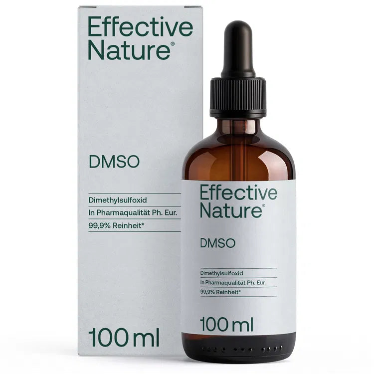 Dimethyl sulfoxide (DMSO) has a purity of 99.9% and meets the requirements of the European Pharmacopoeia (Ph. Eur.). No fragrances, preservatives, or other additives are used during production. The product is packaged in light-protective brown glass with a practical dropper cap for controlled use and reliable quality.